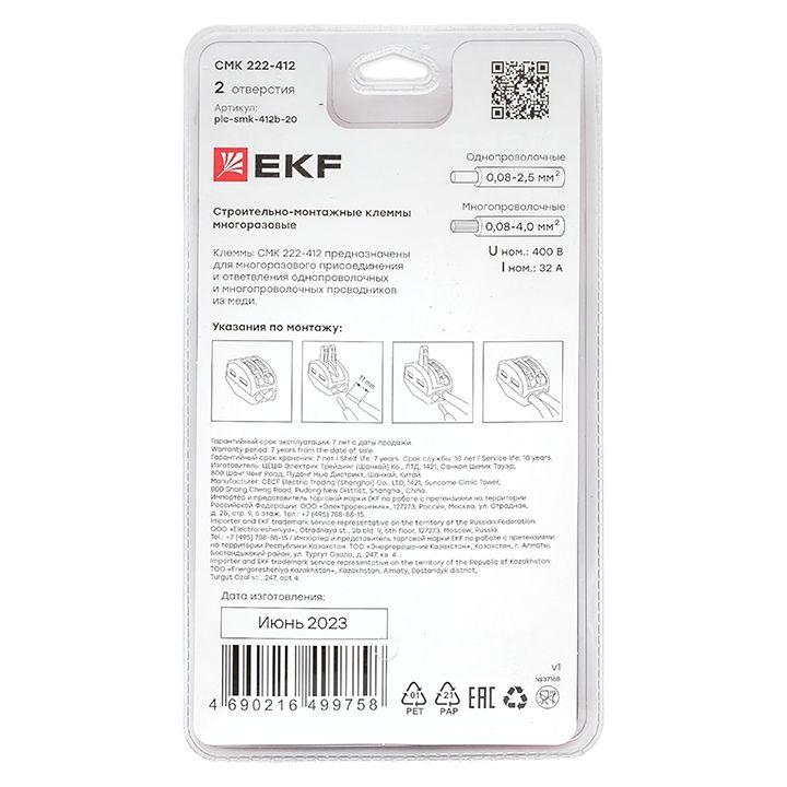 plc-smk-412b-20 | Клемма строительно-монтажная СМК 222-412 с рычагом 2 отверстия (блист.20шт) EKF PROxima