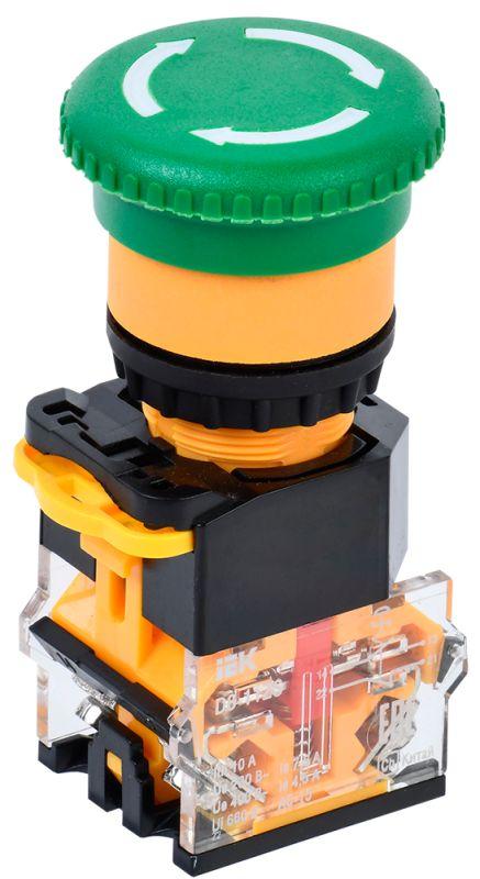Кнопка "Грибок" D8-11ZS d22мм 1з+1р поворотн. с фиксацией зел. IEK BBG30-11ZS-3-23-K06