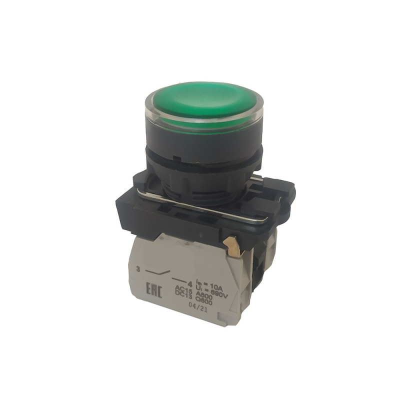 Кнопка КМЕ4111мЛ-220В-зеленый-1но+1нз-цилиндр-индикатор-IP40 КЭАЗ 280751