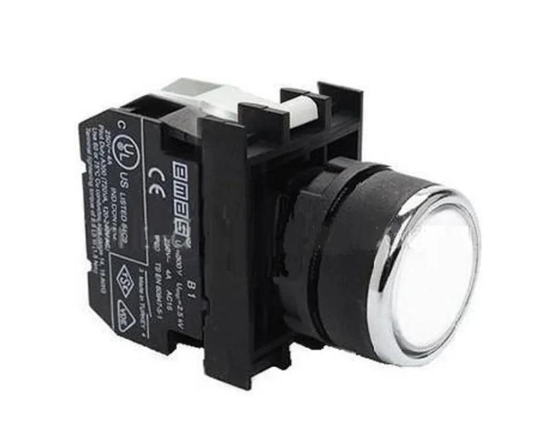 B150DB | Кнопка с подсветкой-светодиод (1HO) 12-30В перем. и пост. тока бел. EMAS