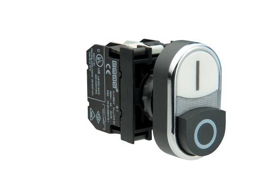B132K21HB | Кнопка сдвоенная выступающая с подсветкой неон (1НО+1НЗ) черн./бел. EMAS