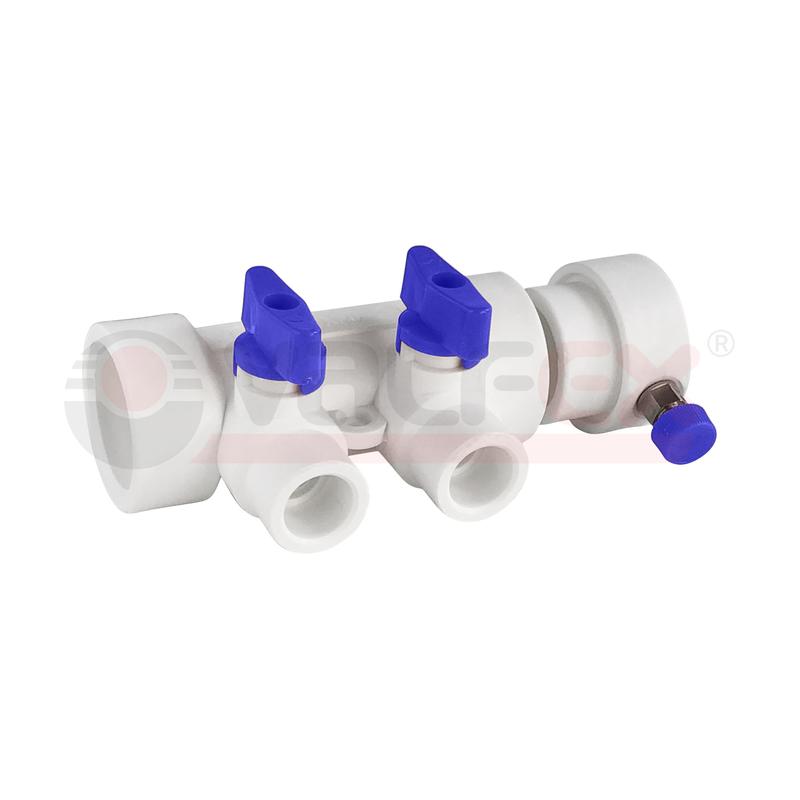 Коллектор PPR с отсечными син. кранами и воздух-ком 40х20 7 выходов (20/1) бел. K VALFEX 111134007