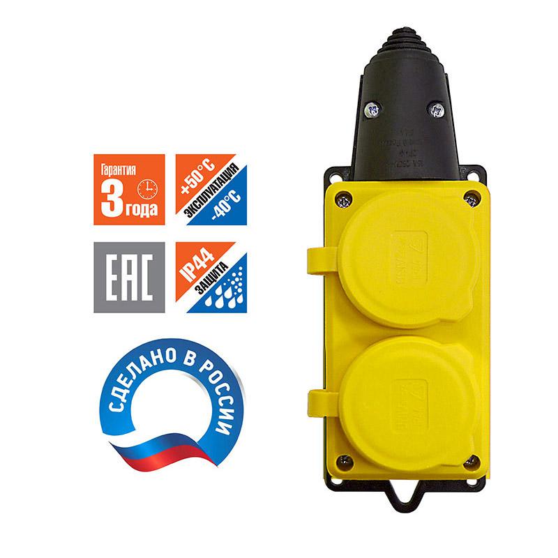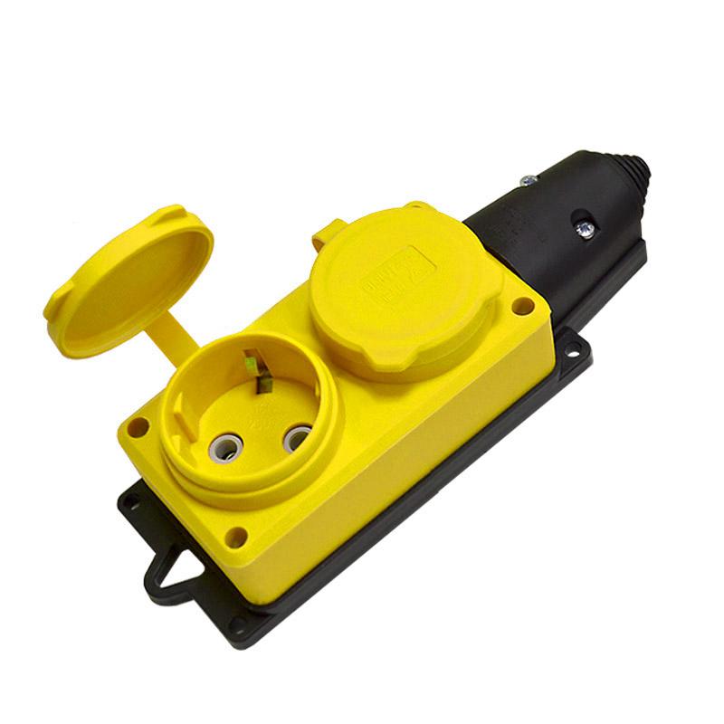 3082 | Колодка удлинителя 2-м 1ф с заглушками компакт каучук желт. Universal