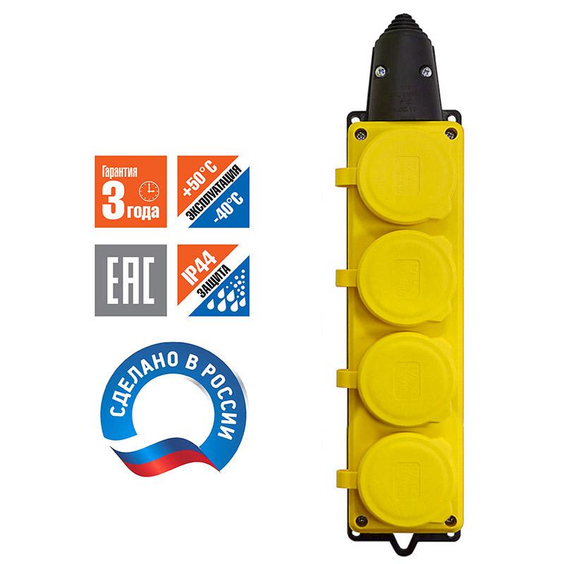 3084 | Колодка удлинителя 4-м 1ф с заглушками компакт каучук желт. Universal