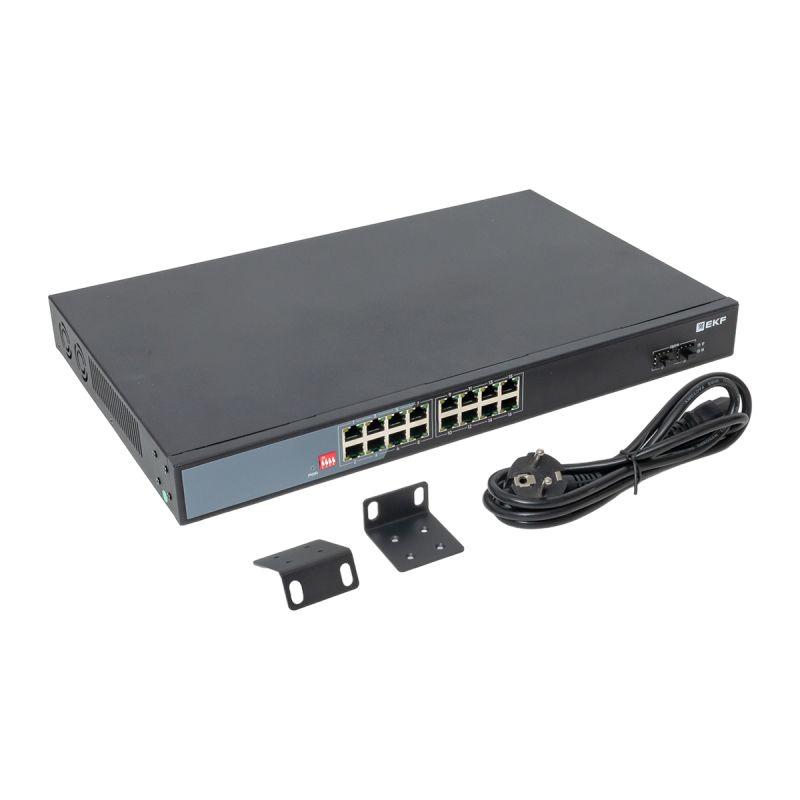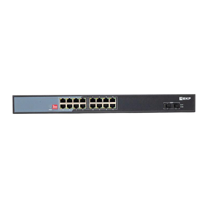 Коммутатор неуправляемый промышленный U-2GX/SFP-16GTP-R 2 порта 1000Base-X SFP 16 портов 10/100/1000Base-T(X) RJ45 c PoE монтаж в 19" стойку TSX EKF TSX-U-2GX/SFP-16GTP-R