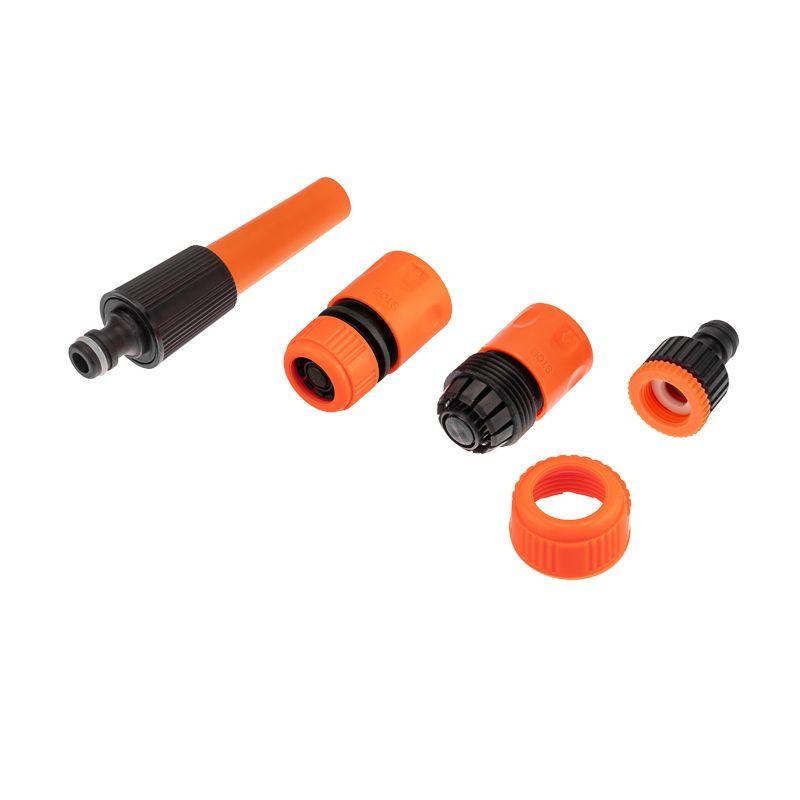 В наборе собраны все необходимые элементы: шланг, 2 коннектора, адаптер и распылитель.