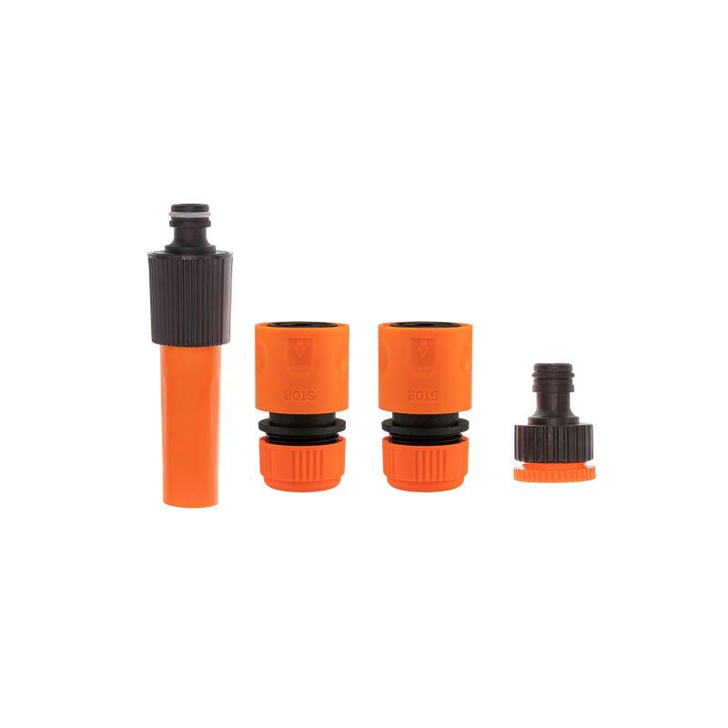 Коннекторы предназначены для подключения к шлангу пистолетов-распылителей, различных насадок и т.д. Один из коннекторов оснащен функцией «аквастоп», которая позволяет подключать к шлангу насадки, не перекрывая подачу воды.