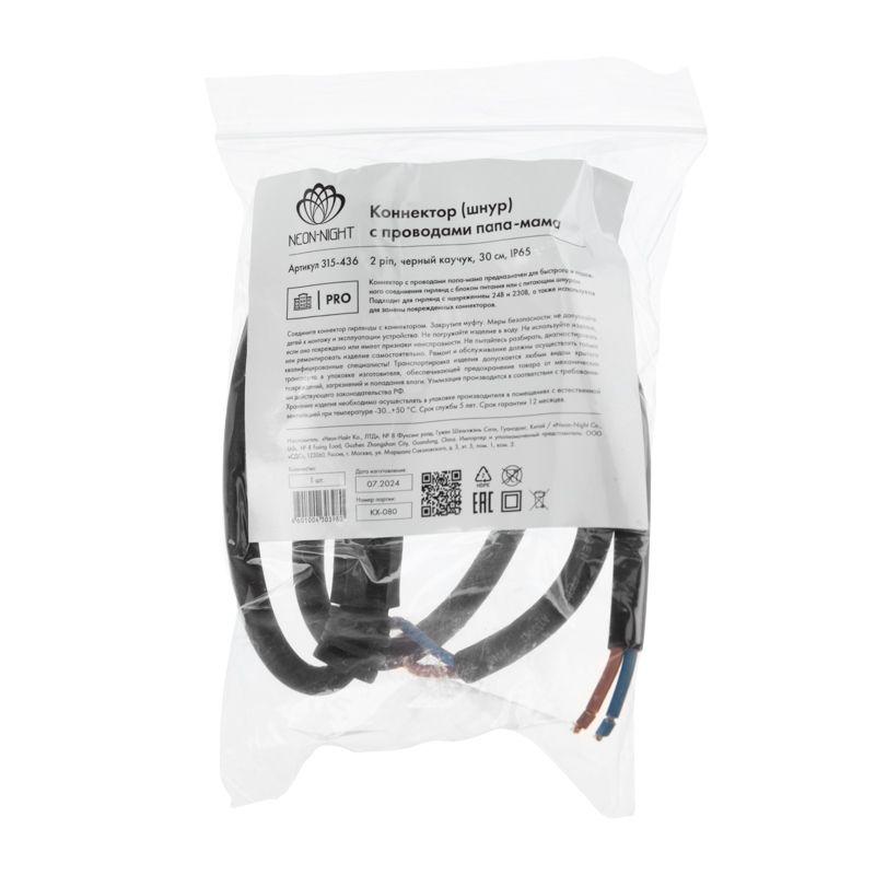 315-436 | Коннектор с проводами папа-мама 2 pin черн. каучук Neon-Night