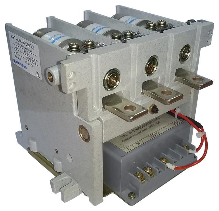 ET011720 | Контактор вакуумный КВТ-1 14-5/630-3 У3 3п 630А кат. 220В 3НО+3НЗ IP00 без реле с литым модулем питания Электротехник