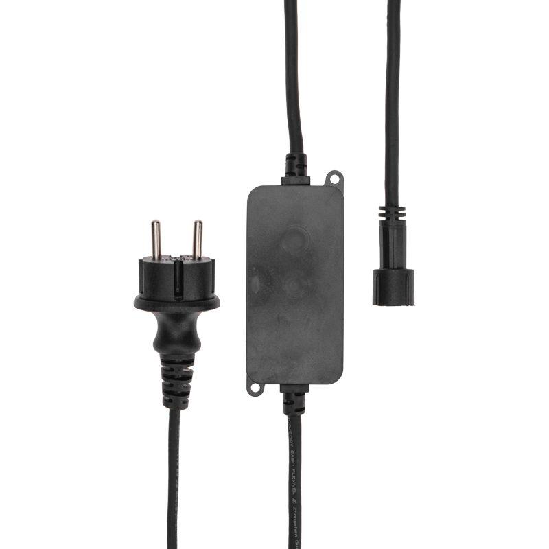 Контроллер рассчитан на подключение к нему гирлянд-сетей в количестве до 10 штук (2х1,5 м), до 5 штук (2х3 м) или до 3 штук (2х4 м) и гирлянд нить (твинкл) в количестве до 10 штук по 20 м и до 20 штук по 10 м.