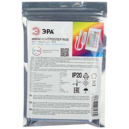 Контроллер мини для светодиодной ленты с ИК пультом RGBController-12/24V-72/144W-IP20-IR ЭРА Б0061110