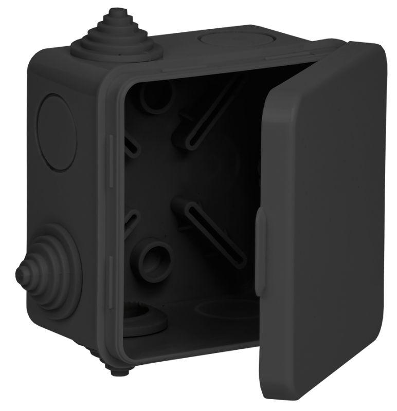 UKO31-080-080-050-K02-54 | Коробка распаячная ОП 80х80х50 IP54 КМ41238 откид. крышка 7 гермовводов черн. IEK