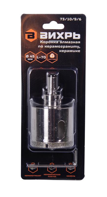 Коронка алмазная по керамограниту/керамике 45мм Вихрь 73/10/9/6