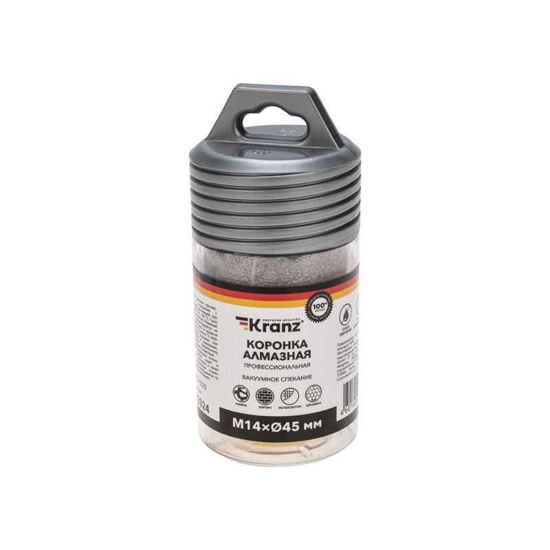 KR-92-1020 | Коронка алмазная профессиональная по керамограниту и железобетону М14 вакуумное спекание 45мм для УШМ Kranz