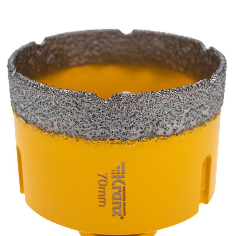 KR-92-1026 | Коронка алмазная профессиональная по керамограниту и железобетону М14 вакуумное спекание 70мм для УШМ Kranz