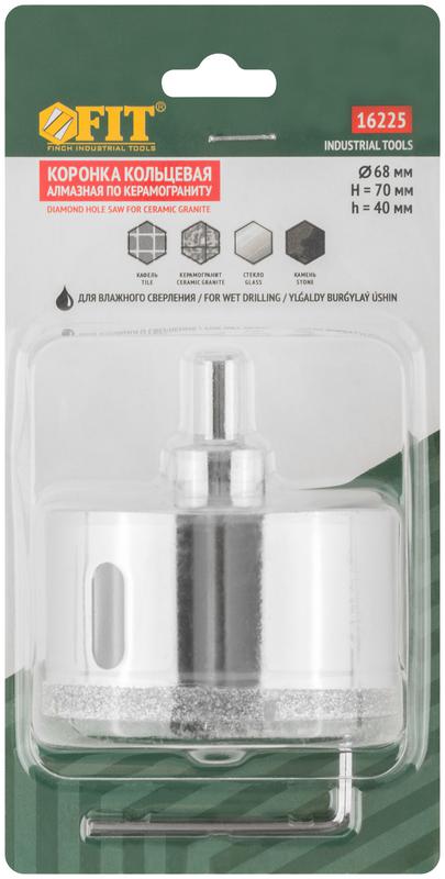 16225 | Коронка кольцевая по керамограниту камню и кафелю алмазная с центровочным сверлом 68х70мм FIT