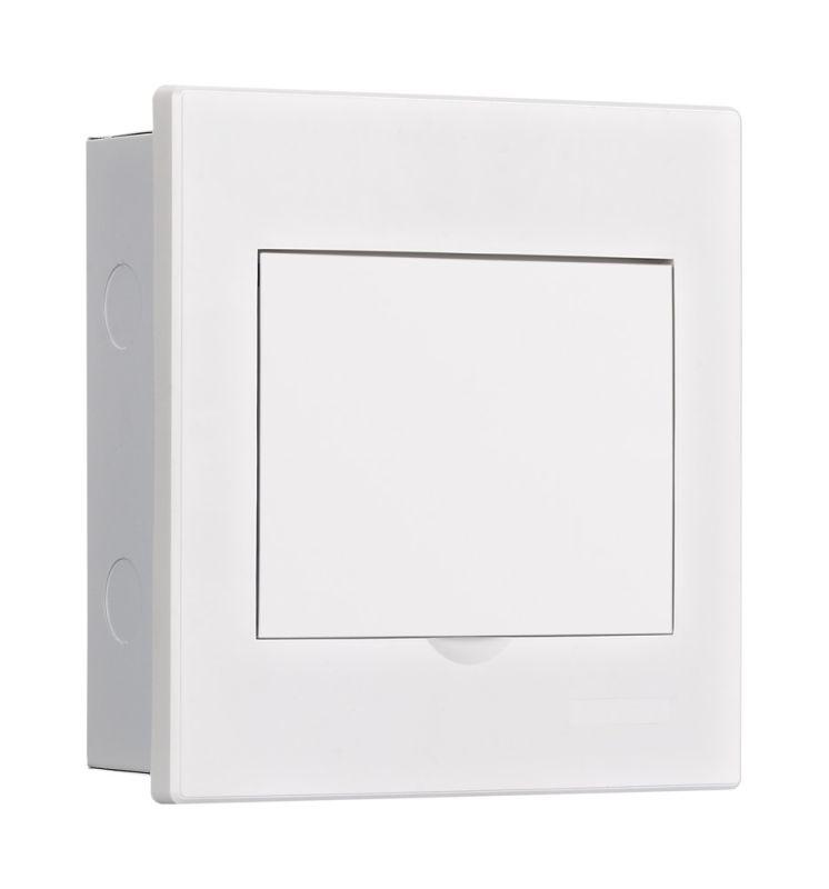 Корпус является встраиваемым, имеет 1 DIN-рейку и 6 модулей (18 мм) для установки устройств, держатель для шинок, шинки N и PE. Дверца фиксируется в верхнем положении. Щиток на 100% совместим с модульным оборудованием Dekraft и Systeme Electric.