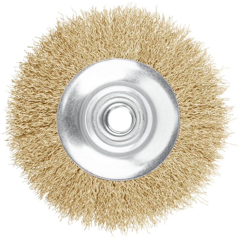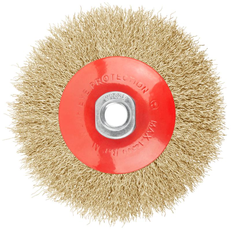 39051 | Корщетка-колесо с наклоном гайка М14 стальная латунированная волнистая проволока 115мм FIT