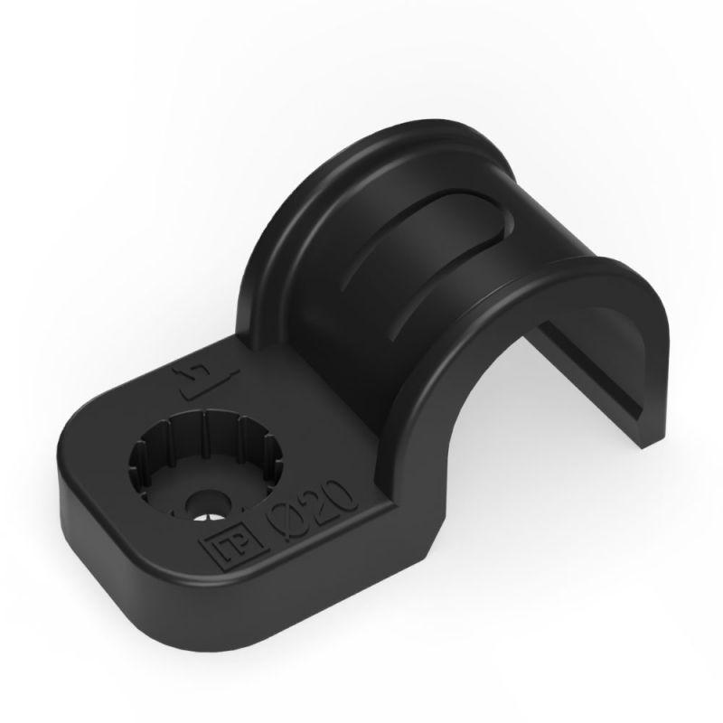 PR13.0373 | Крепеж-скоба односторонняя d20мм для прямого монтажа атмосф. пластик. черн. (уп.50шт) Промрукав