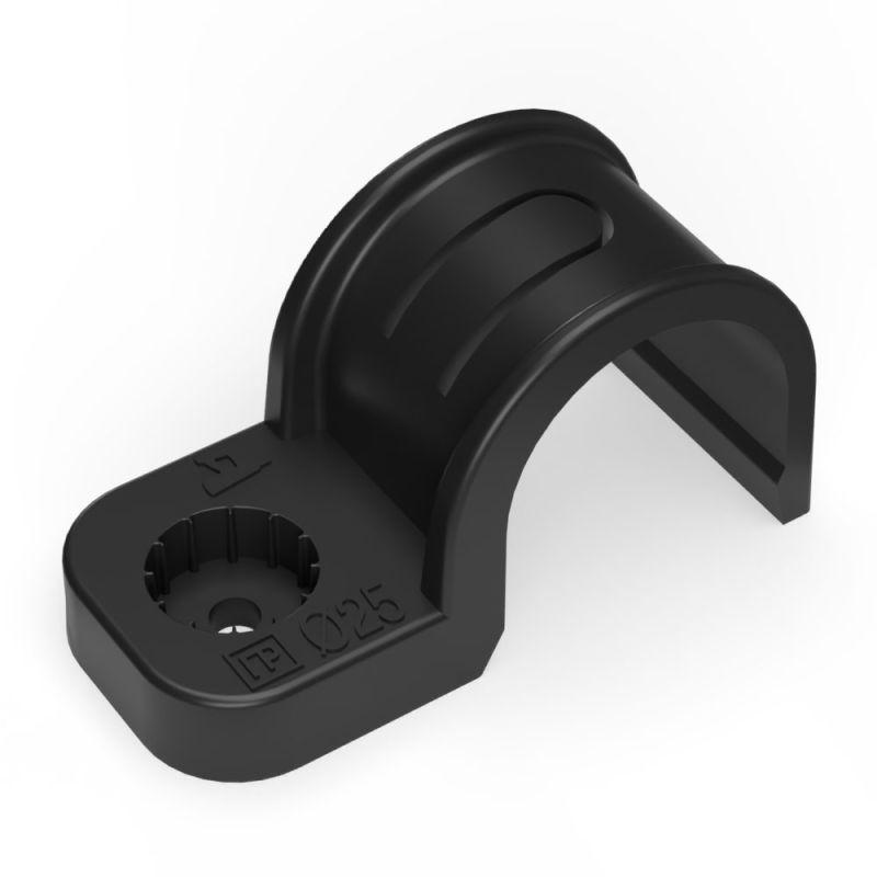 PR13.0374 | Крепеж-скоба односторонняя d25мм для прямого монтажа атмосф. пластик. черн. (уп.50шт) Промрукав