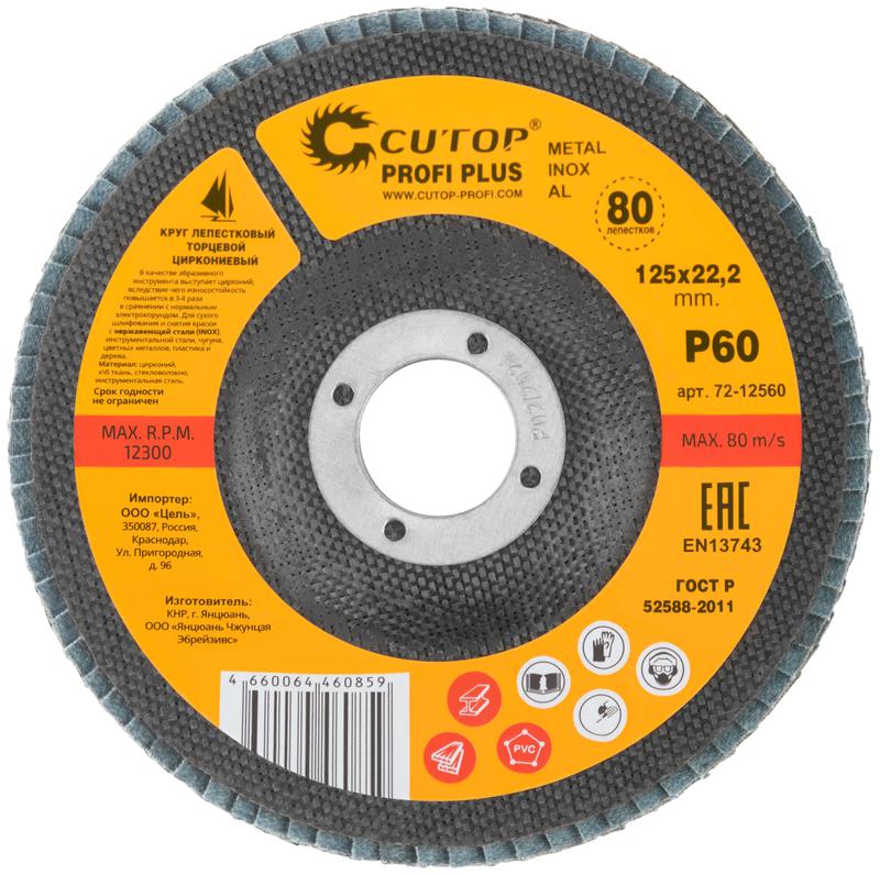 Круг лепестковый торцевой циркониевый Profi Plus (80 лепестков): 125х22.2мм Р60 Cutop 72-12560
