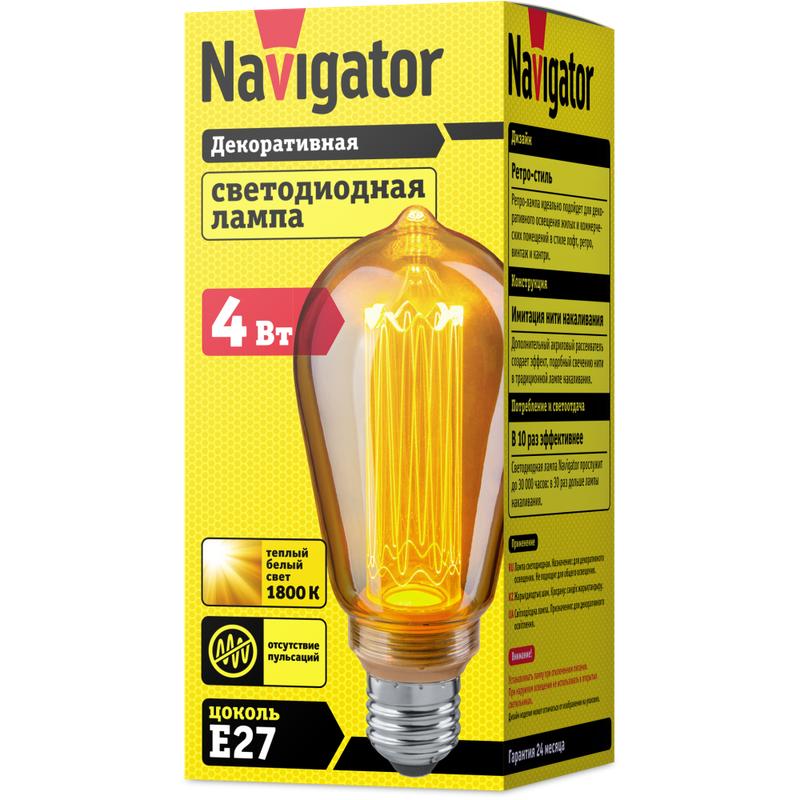 14232 | Лампа светодиодная 14 232 NLL-SC17-ST64-4-230-1.8K-E27-PMMA прозрачная 1800К тепл. бел. E27 200лм 220-240В Navigator
