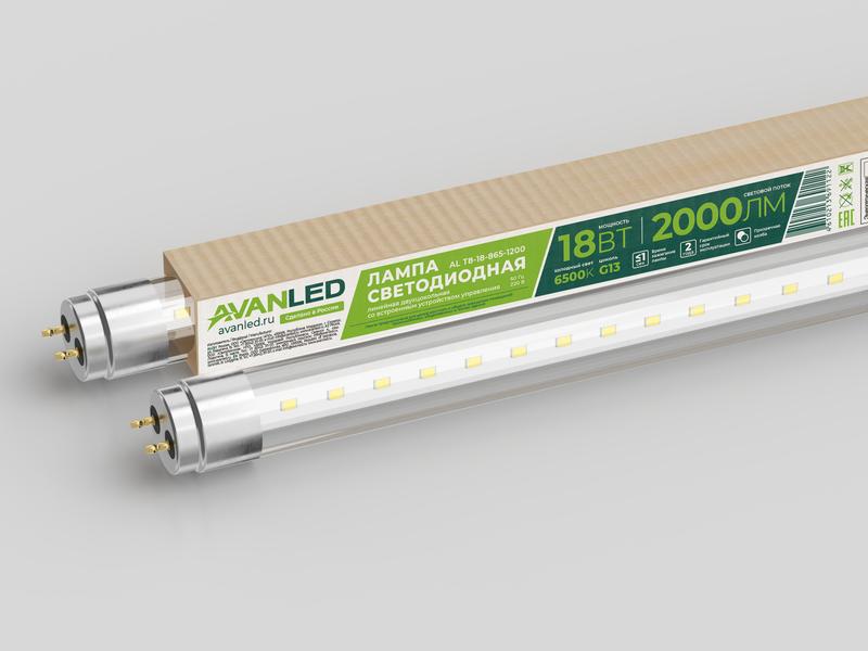 Лампа светодиодная AL T8-18-865-1200 18Вт прозрачная 6500К холод. бел. G13 2000лм 195-265В (пр-во РФ) AVANLED 11212651