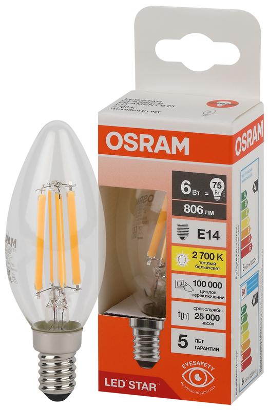 Товар Лампа светодиодная филаментная LSCLB75 6W/827 230VFILCL 6Вт 2700К тепл. бел. E14 806лм B угол пучка 300град. 220-240В (замена 75Вт) прозр. стекло OSRAM 4058075684812 доступен с доставкой по г. Санкт-Петербург, Ленинградской области и территории РФ, или самовывозом.