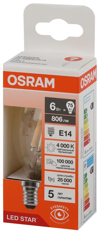 Товар Лампа светодиодная филаментная LSCLB75 6W/840 230VFILCL 6Вт 4000К нейтр. бел. E14 806лм B угол пучка 300град. 220-240В (замена 75Вт) прозр. стекло OSRAM 4058075684843 доступен с доставкой по г. Санкт-Петербург, Ленинградской области и территории РФ, или самовывозом.