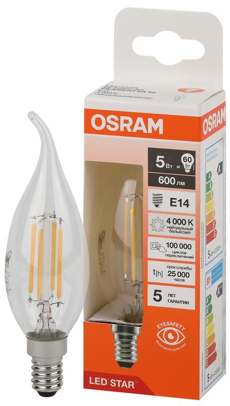 Товар Лампа светодиодная филаментная LSCLBA60 5W/840 230VFILCL 5Вт 4000К нейтр. бел. E14 600лм BA угол пучка 300град. 220-240В (замена 60Вт) прозр. стекло OSRAM 4058075684966 доступен с доставкой по г. Санкт-Петербург, Ленинградской области и территории РФ, или самовывозом.