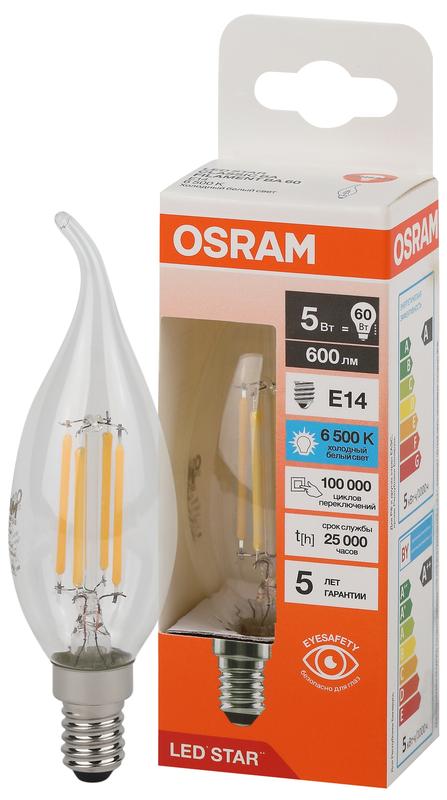 Товар Лампа светодиодная филаментная LSCLBA60 5W/865 230VFILCL 5Вт 6500К холод. бел. E14 600лм BA угол пучка 300град. 220-240В (замена 60Вт) прозр. стекло OSRAM 4058075688131 доступен с доставкой по г. Санкт-Петербург, Ленинградской области и территории РФ, или самовывозом.