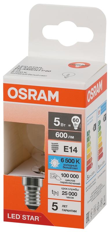 Товар Лампа светодиодная филаментная LSCLP60 5W/865 230VFILCL 5Вт 6500К холод. бел. E14 600лм P угол пучка 300град. 220-240В (замена 60Вт) прозр. стекло OSRAM 4058075688223 доступен с доставкой по г. Санкт-Петербург, Ленинградской области и территории РФ, или самовывозом.