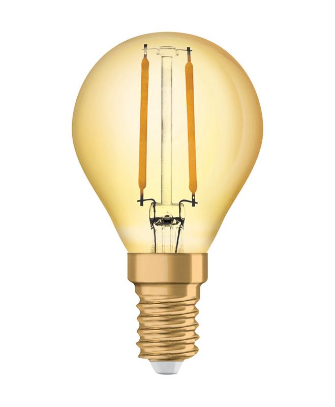4058075290815 | Лампа светодиодная филаментная Vintage 1906 LED CL P FIL GOLD 22 non-dim 2.5W/824 2.5Вт 2400К тепл. бел. E14 220лм 220-240В (замена 22Вт) зол. OSRAM