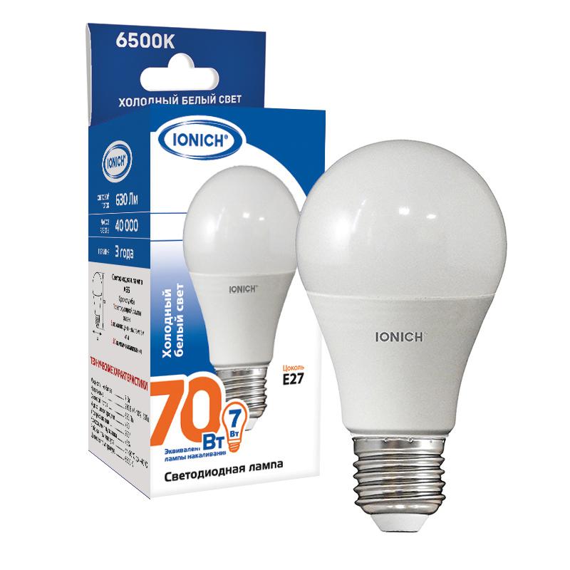 Товар Лампа светодиодная ILED-SMD2835-A55-7-630-230-6.5-E27 A55 7Вт E27 6500К холод. бел. IONICH 1621 доступен с доставкой по г. Санкт-Петербург, Ленинградской области и территории РФ, или самовывозом.