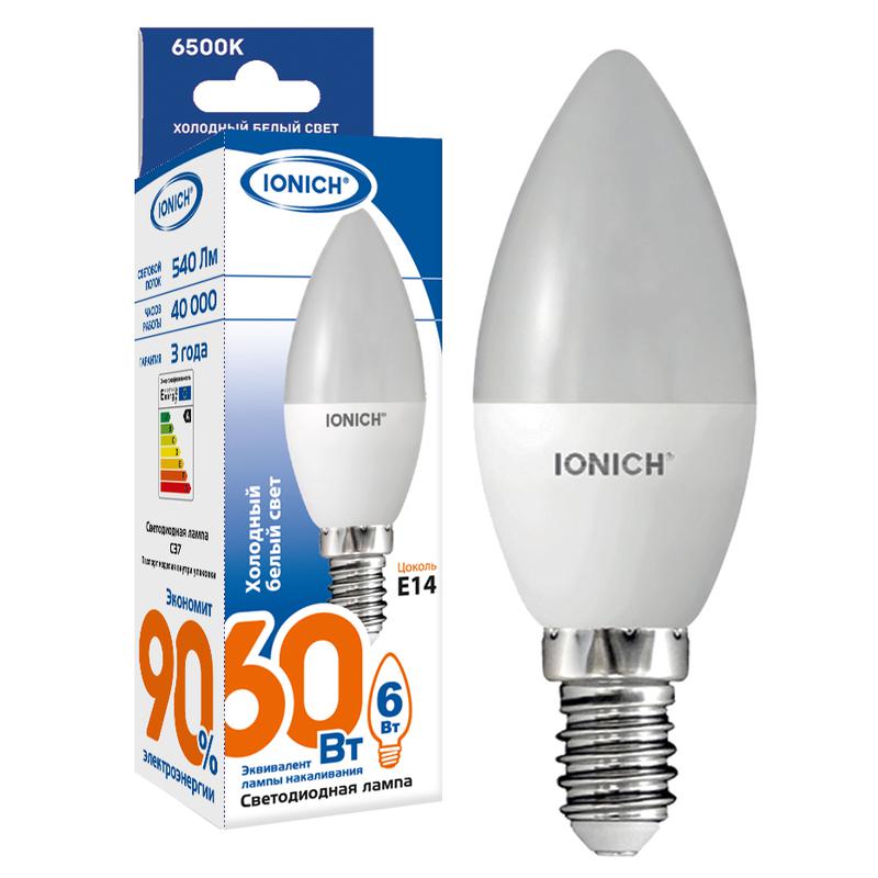 1530 | Лампа светодиодная ILED-SMD2835-C37-6-540-220-6.5-E14 (1118) IONICH