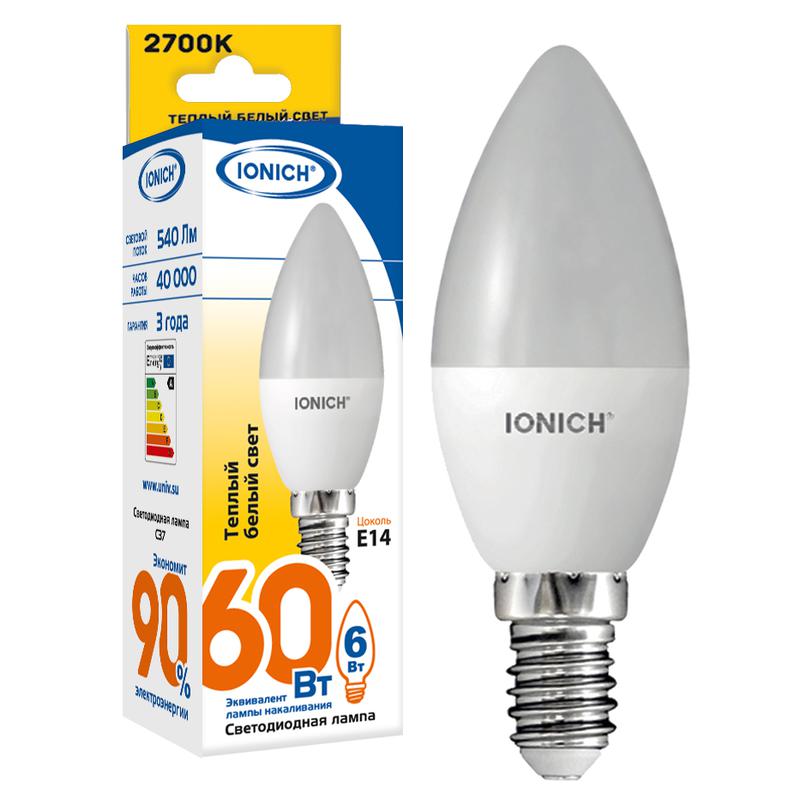 Товар Лампа светодиодная ILED-SMD2835-C37-6-540-230-2.7-E14 C37 6Вт Свеча 2700К тепл. бел. Е14 230В IONICH 1630 доступен с доставкой по г. Санкт-Петербург, Ленинградской области и территории РФ, или самовывозом.