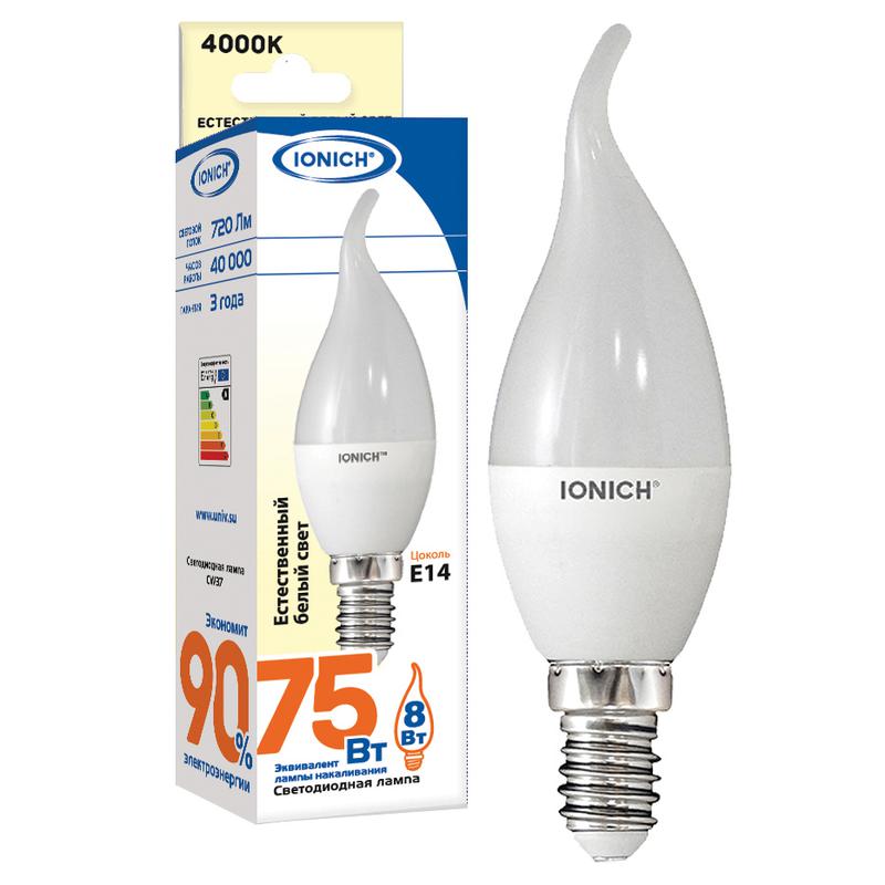 Товар Лампа светодиодная ILED-SMD2835-CW37-8-720-230-4-E14 8Вт CW37 свеча на ветру 4000К нейтр. бел. E14 230В IONICH 1637 доступен с доставкой по г. Санкт-Петербург, Ленинградской области и территории РФ, или самовывозом.