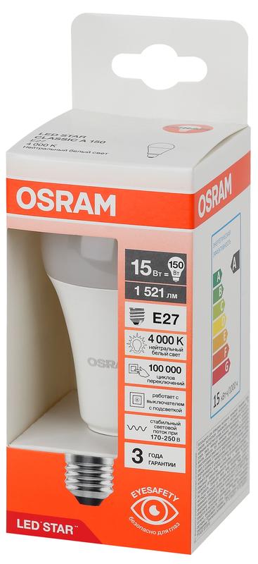 Товар Лампа светодиодная LED Star 15Вт 4000К нейтр. бел. E27 1521лм A угол пучка 180град. 170-250В (замена 150Вт) матов. пластик OSRAM 4058075695412 доступен с доставкой по г. Санкт-Петербург, Ленинградской области и территории РФ, или самовывозом.