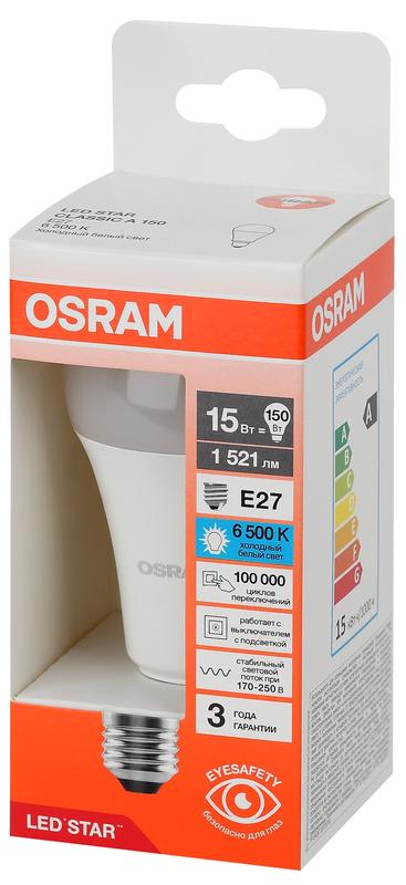 4058075695443 | Лампа светодиодная LED Star 15Вт грушевидная 6500К E27 1521лм (замена 150Вт) OSRAM