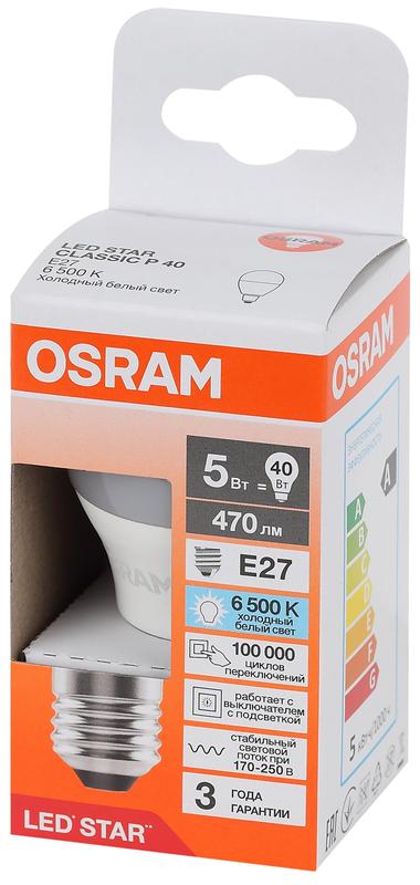 Товар Лампа светодиодная LED Star 5Вт 6500К холод. бел. E27 470лм P угол пучка 180град. 170-250В (замена 40Вт) матов. пластик OSRAM 4058075696327 доступен с доставкой по г. Санкт-Петербург, Ленинградской области и территории РФ, или самовывозом.