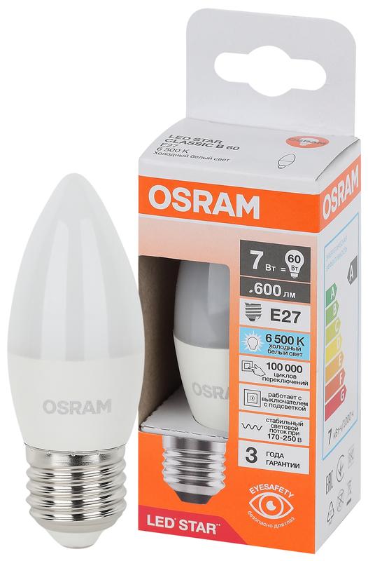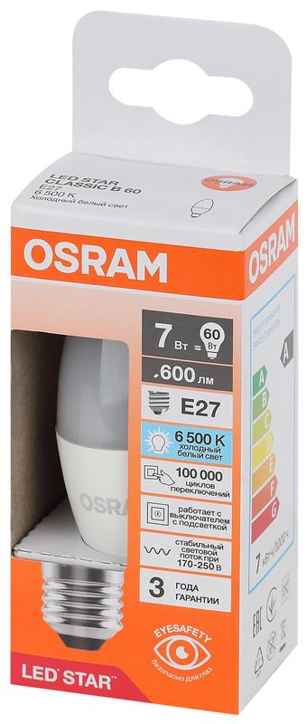 Товар Лампа светодиодная LED Star 7Вт 6500К холод. бел. E27 600лм B угол пучка 200град. 170-250В (замена 60Вт) матов. пластик OSRAM 4058075697010 доступен с доставкой по г. Санкт-Петербург, Ленинградской области и территории РФ, или самовывозом.