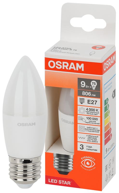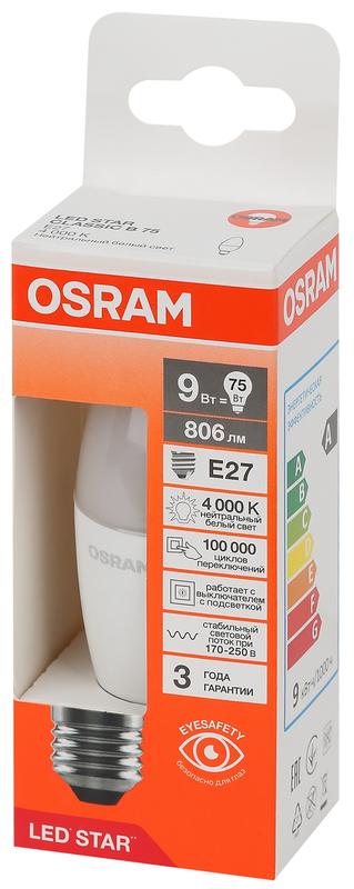 Товар Лампа светодиодная LED Star 9Вт 4000К нейтр. бел. E27 806лм B угол пучка 200град. 170-250В (замена 75Вт) матов. пластик OSRAM 4058075697072 доступен с доставкой по г. Санкт-Петербург, Ленинградской области и территории РФ, или самовывозом.