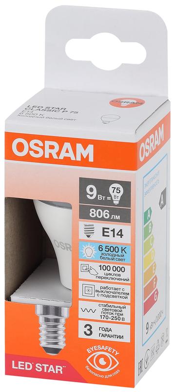 Товар Лампа светодиодная LED Star 9Вт 6500К холод. бел. E14 806лм P угол пучка 180град. 170-250В (замена 75Вт) матов. пластик OSRAM 4058075696204 доступен с доставкой по г. Санкт-Петербург, Ленинградской области и территории РФ, или самовывозом.
