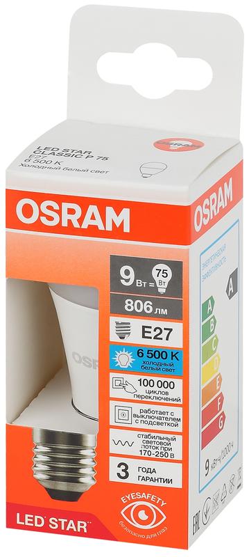 Товар Лампа светодиодная LED Star 9Вт 6500К холод. бел. E27 806лм P угол пучка 180град. 170-250В (замена 75Вт) матов. пластик OSRAM 4058075696686 доступен с доставкой по г. Санкт-Петербург, Ленинградской области и территории РФ, или самовывозом.