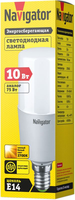 61468 | Лампа светодиодная 61 468 NLL-T39-10-230-2.7K-E14 10Вт линейная матовая 2700К тепл. бел. E14 750лм 176-264В Navigator