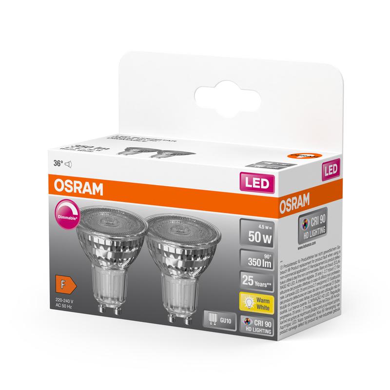 Лампа светодиодная диммируемая Superstar PAR16 4.5Вт 2700К тепл. бел. GU10 350лм прозр. стекло 220-240В (замена 50Вт) OSRAM 4058075797901