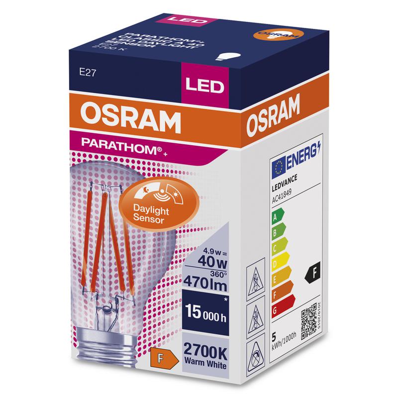 Лампа светодиодная филаментная ParathomA 470лм 4.9Вт 2700К тепл. бел. E27 (замена 40Вт) прозр. стекло 220-240В OSRAM 4058075761995