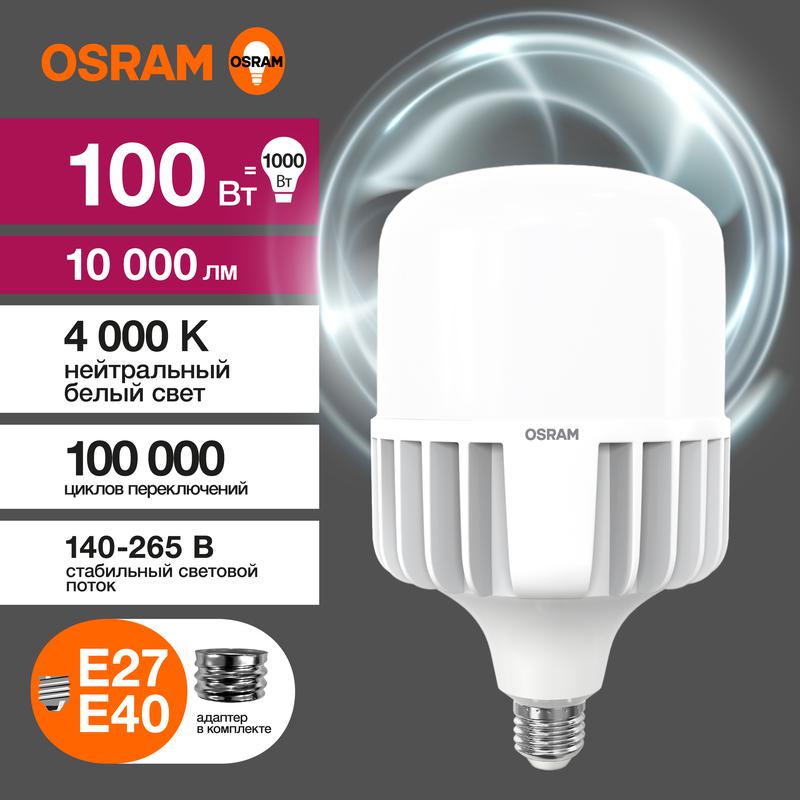 4099854121722 | Лампа светодиодная HW 100Вт T матовая 4000К нейтр. бел. E27/E40 10000лм угол пучка 200град. 140-265В PF>/=0.9 алюм. (замена 1000Вт) OSRAM