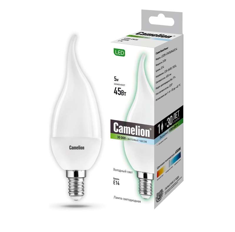Товар Лампа светодиодная LED5-CW35/845/E14 5Вт свеча на ветру 4500К бел. E14 405лм 220-240В Camelion 12034 доступен с доставкой по г. Санкт-Петербург, Ленинградской области и территории РФ, или самовывозом.