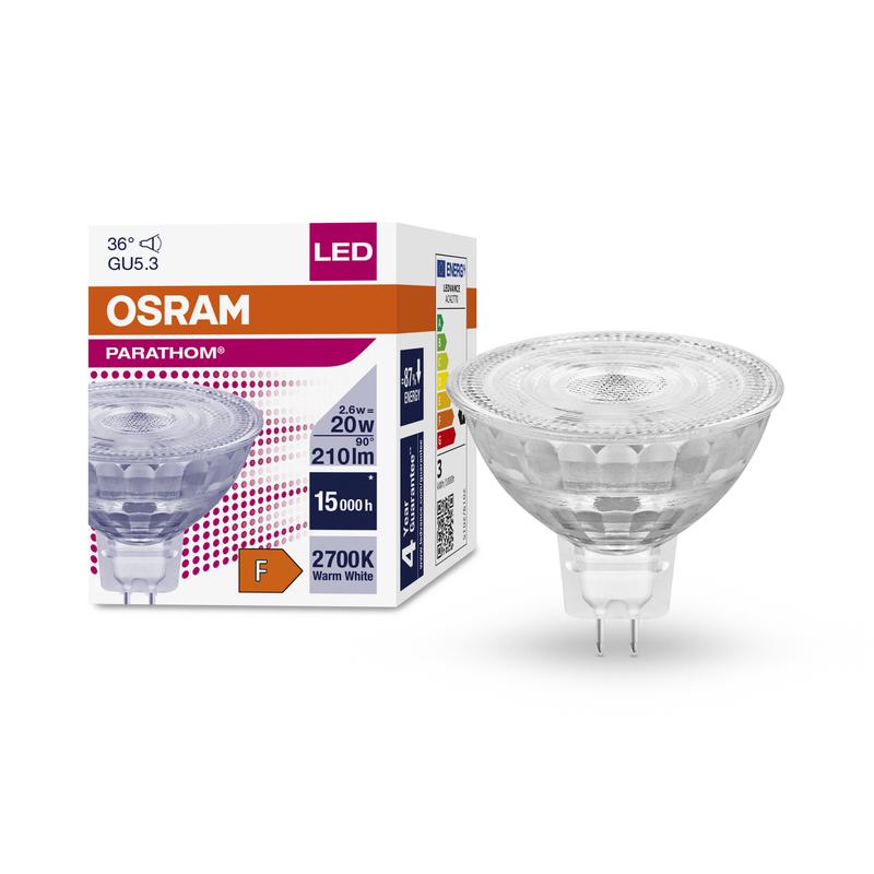 Лампа светодиодная PARATHOM MR16 2.6Вт 2700К тепл. бел. GU5.3 210лм прозр. стекло 12В (замена 20Вт) OSRAM 4058075796577